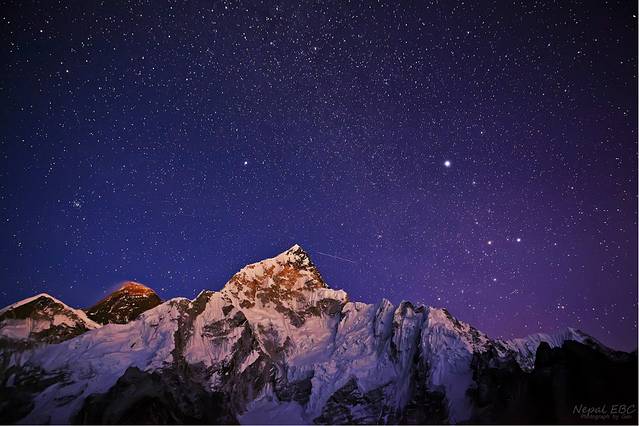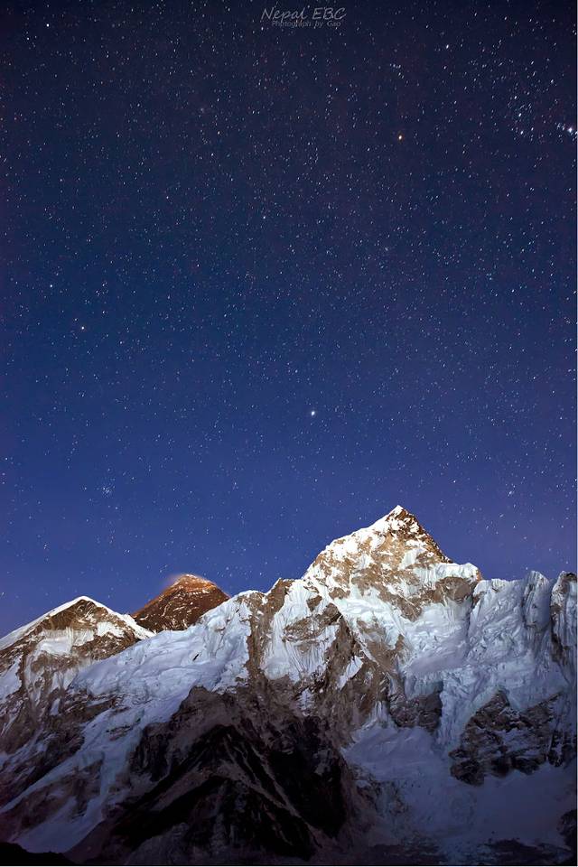 好啦,重点图片开始,人品爆发的时刻到了~从EBC回到驻地,又登上Kala Patthar,在半山腰事先探好的拍摄点,支起三脚架,剩下的就是等待。等待日落,等待日落之后一小时,等待珠峰上的银河。