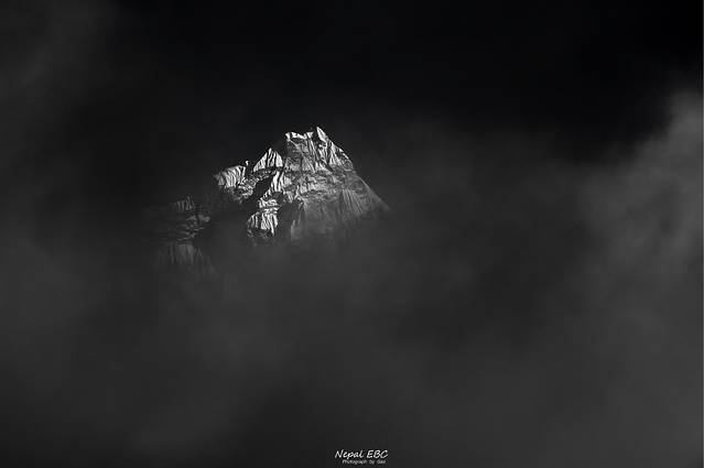 这是我认为最不可思议的一张图片,站在Kala Patthar的半山腰看珠峰日落,着实把没见过大场面的我看呆了。文艺点琢磨,最少在他存在的这个纬度上,每天最后一缕暮光以及第一缕晨光应该就在他的峰顶间褪尽与散开。站在这放佛世界的尽头,在路上探寻那没有原点的终点~山魂