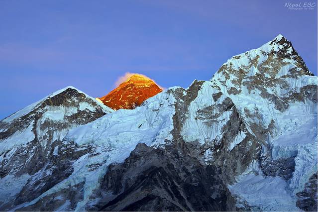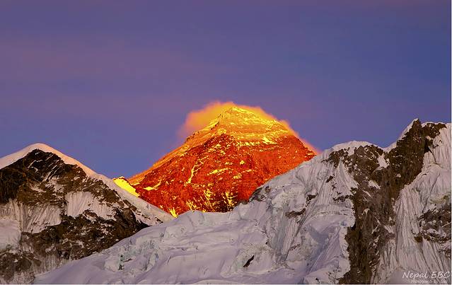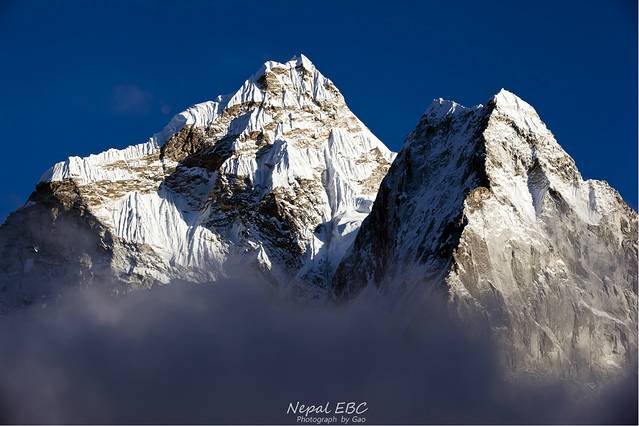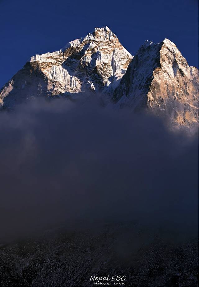 用当地的名字萨加玛塔~~显眼的花岗岩岩壁,黝黑的山体