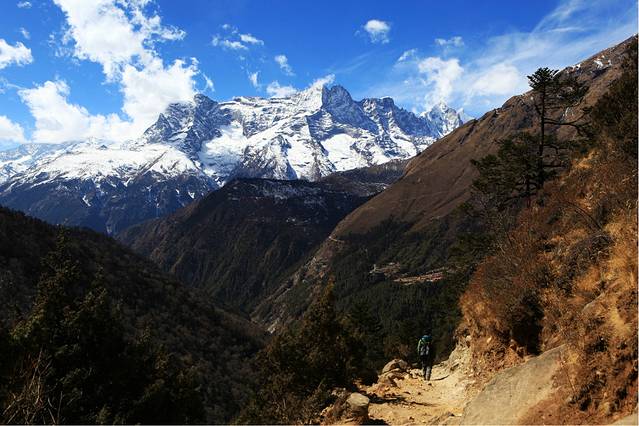 Tengboche下撤的路上,上山的时候雪中漫步,穿着羽绒服都有些阴冷,短短十天,再到这里确实艳阳高照,温度大幅回升,感觉春天满上就要到来~~