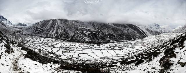 Tengpoche(3860)-Pangboche(3930)–Shomare(4250)–Dingboche町布切到达Dingboche的时候还在下雪,我们决定休整一天,安全第一岛峰也暂时不打算爬了,既然不爬岛峰,那条沟也就不准备去了,珠峰在几年前西藏这边的大本营已经看到过,更大场面还是留着到EBC好好欣赏吧,不急不急~~~没想到这一休就是三天~~基本上这三天我们就是白天爬爬小山包(海拔5100的一个小观景点),晚上屋里烤烤火吹吹牛,夜里拍拍星星上个厕所啥的~~主要以休息调整适应海拔为主,小日子过得也算轻松惬意。现在想想,这几天休息很关键,为后来在EBC我们良好的状态打下了坚实的基础。人是活的,攻略计划永远都是可调整的,主要是玩的开心最重要~D7