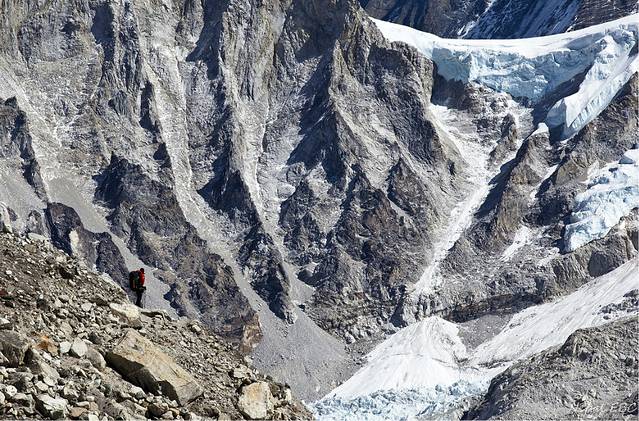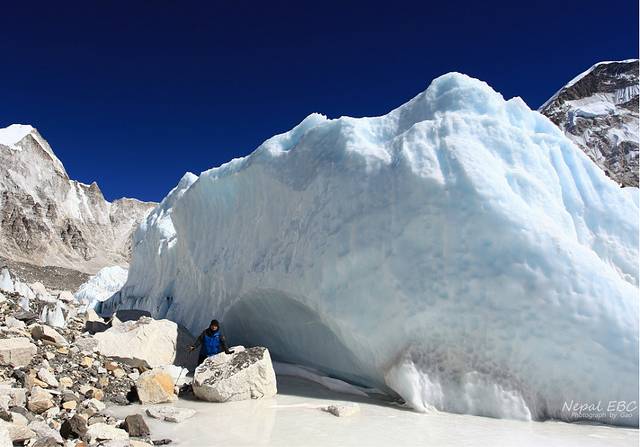 巨大的冰川从珠峰山壁上缓缓流下,一二十米高的冰塔林清晰可见,行走在这里,感觉自己就像是走在世界的尽头一般,一种莫名的压迫感笼罩着我,同时令人震撼的景色又使我热血沸腾。