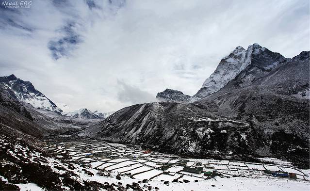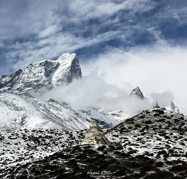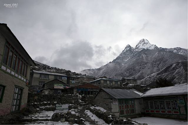 雪后的Dingboche,别有一番韵味,Ama Dablam就躲在云后,忽隐忽现