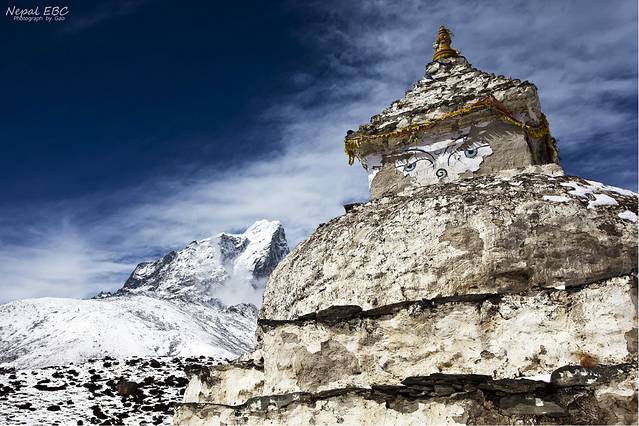 尼泊尔山区和城市内随处可见的白塔,佛眼的颜色各不相同