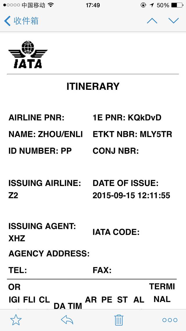 实用小贴士:你还需要携带纸质的电子行程单(去哪里订的话他会发邮件给你的),和房间住宿的单!!!!过安检都有检查的,当然电子版也可以,不过大部分的人都用纸制的(本人亲测,因为我把纸质的不小心弄丢了!!)