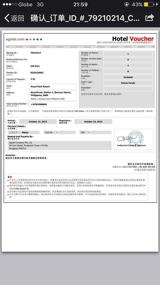 我们是从上海出发-马尼拉-卡里波-长滩,一共是四段。