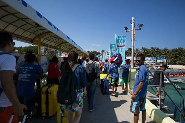 到达卡里波机场,你需要的是出门买一张套票,直接包含税和船票和大巴(就在机场门口出来那几个搭棚子的地方。价格是死的),你只要告诉他们你要去BROCAY(长滩),他们就懂了,可以买单程也可以买往返,建议买单程大概500P,返程450P(我比较推荐做七座,服务态度更好,价格大概低一点,不过你担心受骗你就买套票)大概需要4-5个小时,你就抵达目的地了,3小时大巴,20分钟船,还有等待的时间~不过想想马上要抵达梦幻长滩,这点时间我们还是等得起了咯~