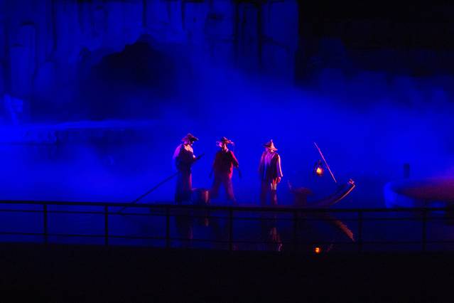 利用开场前的短暂时间查了查武夷水秀的故事。讲述的是3个年轻的农民,将竹筏停靠在蜿蜒的九曲溪畔时,发现了不同寻常的泉水而进入梦境所展开的故事。