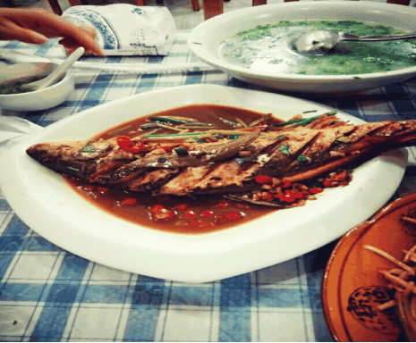 武夷山本地的溪鱼,微辣,就着米饭,特别的香。武夷山,无辣不成席,颇有点豪气爽朗。于是我们也豪气爽朗的吃了个干净。