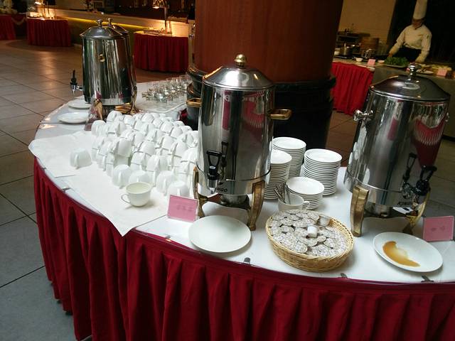 美美睡上一觉,第二天早上,我们来到宴会厅吃早餐。这里的早餐也是因为入住湖泉酒店免费提供的。走过长廊,就来到宴会厅。宴会厅山水环绕,与湖泉酒店C座相连。这里的早餐各式各样,只要你想得到的,都会有。米线、豆浆、油条、糕点、水果、果汁等等,胃口有多大,就可以吃多少。听服务员介绍,这里不仅提供早餐,而且好多办婚宴的都会选择在这里举行。因为这里不仅环境好,服务好,而且价格不算贵,物超所值。另外如果举办婚宴30桌以上的客人可以免费赠送一瓶价值300-500元以内的红酒,很划算。