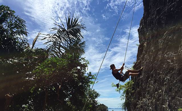 又是一个自然醒,吃了个美味的早餐后,就开始攀岩了。我们是前一天晚上去代理预订的半天攀岩。到了莱利不攀岩真的很可惜!!也不要觉得多困难,不试试怎么知道呢。