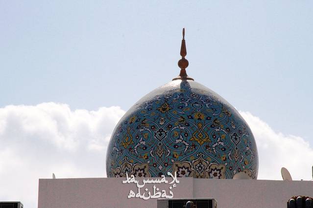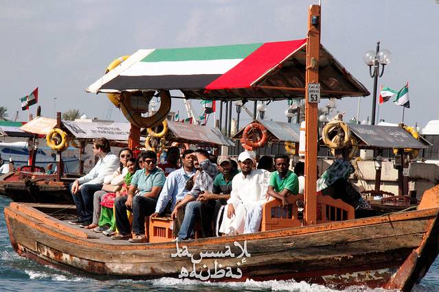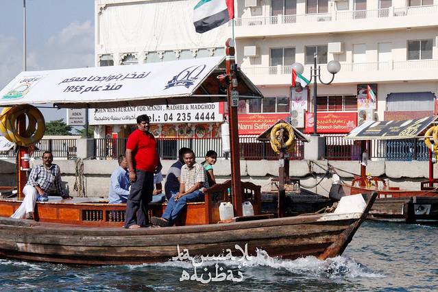 码头分去不同地方的船的乘坐点,船是一种比较简陋的小木船,乘客一般是背对背坐的,我们不到10个人做一艘的话,可以盘腿坐在船头啦~ 大概5分钟就能到达对岸,如果真的要体验一下迪拜河的话就一定要试一下乘坐水上Taxi,船票很便宜。在迪拜河上荡漾的途中,空中不时有海鸥盘旋,除老式风塔(如今保留极少)之外,还能看到众多清真寺的圆顶和尖塔,很漂亮。总的来说,要体验迪拜河,只有通过坐船过河才可以真正体验迪拜河。