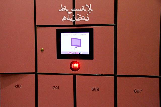 这个是门票,也是开启柜子的条形码,每个人都带在手臂上,以免丢失。
