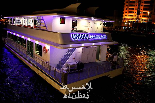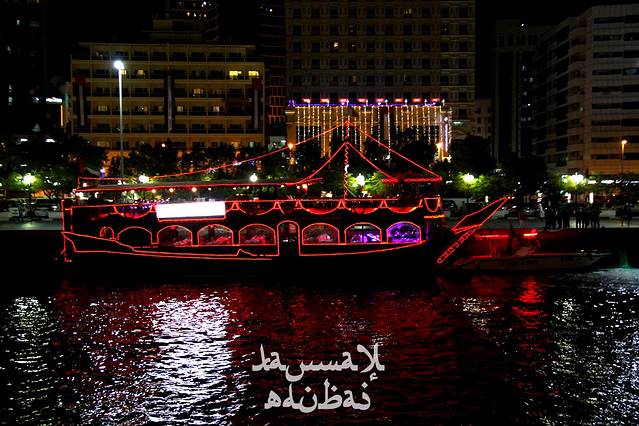 夜游迪拜湾,预定了游船的晚餐,准备边欣赏夜景边享受美味啦!