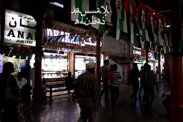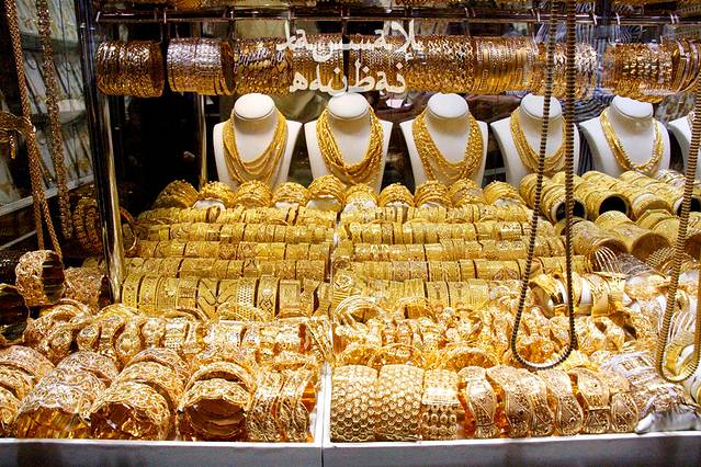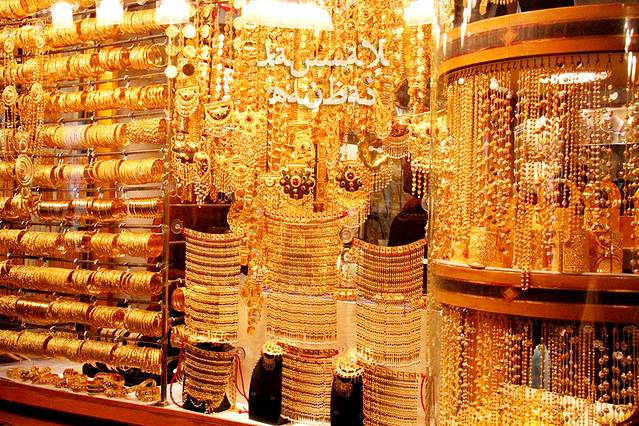迪拜黄金街位于一个历史久远的小百货市场,有点像国内的潘家园,黄金店铺一家挨一家。每一家黄金店铺里都摆满了金光闪闪的各种黄金饰品,式样繁多,设计独特,造像大胆、夸张。其中很多黄金饰品都充满着阿拉伯特色,也有部分饰品遗留着印度传统设计风格,如果有时间可以仔细逛一逛,这次时间比较赶所以在这里只呆了半个小时~ 这里黄金的价钱不必国内的便宜,如果喜欢阿拉伯风格的款式倒是可以挑挑,毕竟这里的很多款式国内是找不到的。