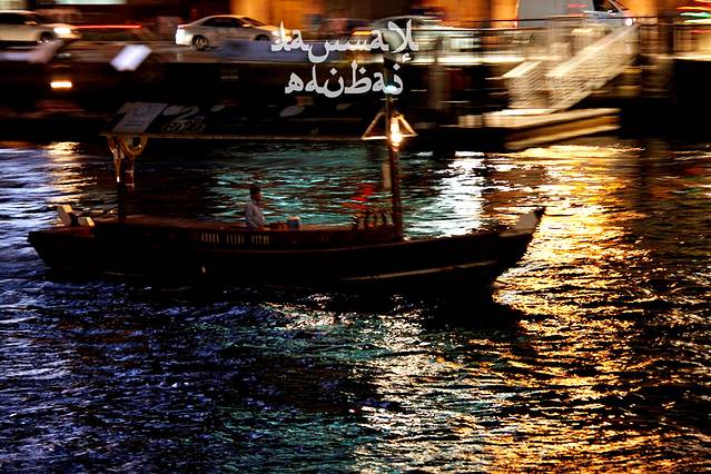 迪拜河是迪拜人民的母亲河,迪拜人对她有着特殊的情感,她孕育了迪拜的诞生,是最初的迪拜人繁衍生息的源头。迪拜河把迪拜分成Deira和Bur Dubai两部分,一边是新兴的Bur Dubai,一边是象征着迪拜历史的旧城区Deira。