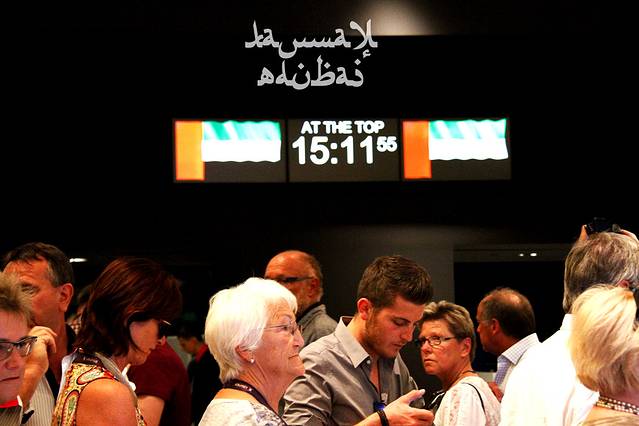 迪拜的又一个世界之最,也是象征着迪拜除了七星帆船酒店的另一个土豪型建筑,哈利法塔。既然算是世界闻名的标志性景点,游客当然也不会太少,登塔之前排队是免不了的,不过速度还是很快的,1-124层的一站式电梯只需要1分钟的时间,如果你是个身体健康的正常人,你的耳朵可能会在急速升降的过程中感觉些许不适,多做吞咽动作就能缓解了。等上124层后,有一圈不同角度的观景台,每个角度可以看到迪拜不同的风景,如果是夜晚,迪拜的夜景更是不容错过。