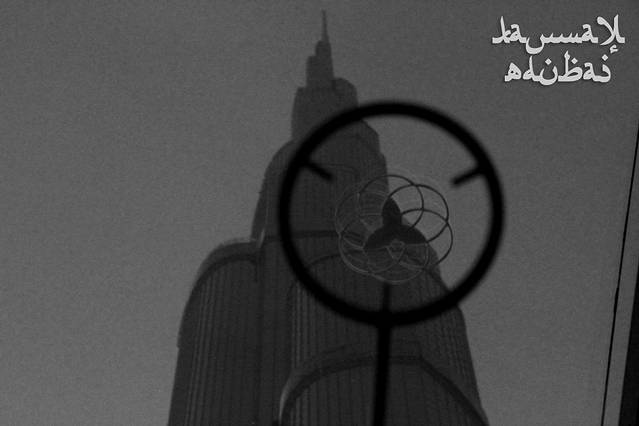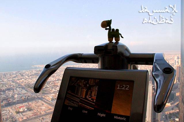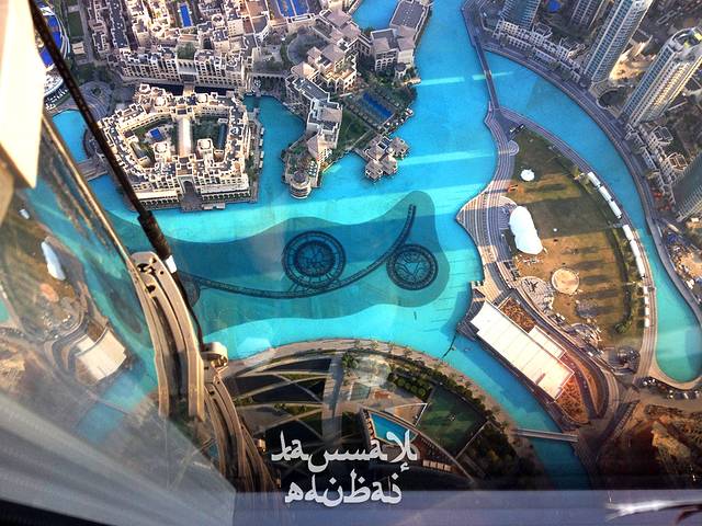 大多数人只知道迪拜塔的世界最高的建筑,很奢华很土豪,但你知道如果从正上方看下来,它是什么形状吗?一朵六瓣的花,沙漠之花。在登塔之前,这里是个排队拍照的位置,会有一名工作人员告诉你,用靶心瞄准玻璃天花板上的那朵花。