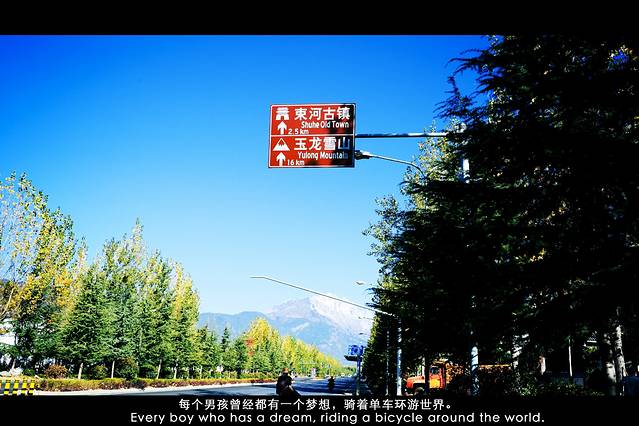 慢悠悠的丽江,早上8点起来,路上的行人寥寥无几,我们昨天租了一辆车骑行去束河,GOGOGO~~