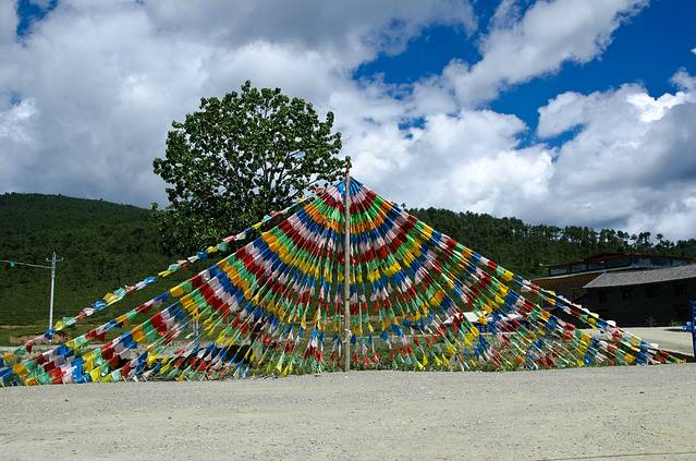 到了一个村子里,去一个卓玛家听她介绍这里。这里的藏民都信藏传佛教,释迦摩尼一脉,六字真言,“嗡、嘛、呢、叭、咪、吽”,文成公主入藏,带来了许多东西,纺织业,种植业,最后只有青稞能够在高原种植。这里的人,特别崇拜毛泽东,因为是毛泽东解放了这里,翻身农奴把歌唱。在他们家都会供奉毛泽东头像的,如果哪家有人入党了,一家人走路都是仰头挺胸的,还会把党旗插在大门前。每家屋顶上都会插旗子,好像是家里出了活佛的插黄色的,白色的好像是家里有人在寺庙·····不太记得了