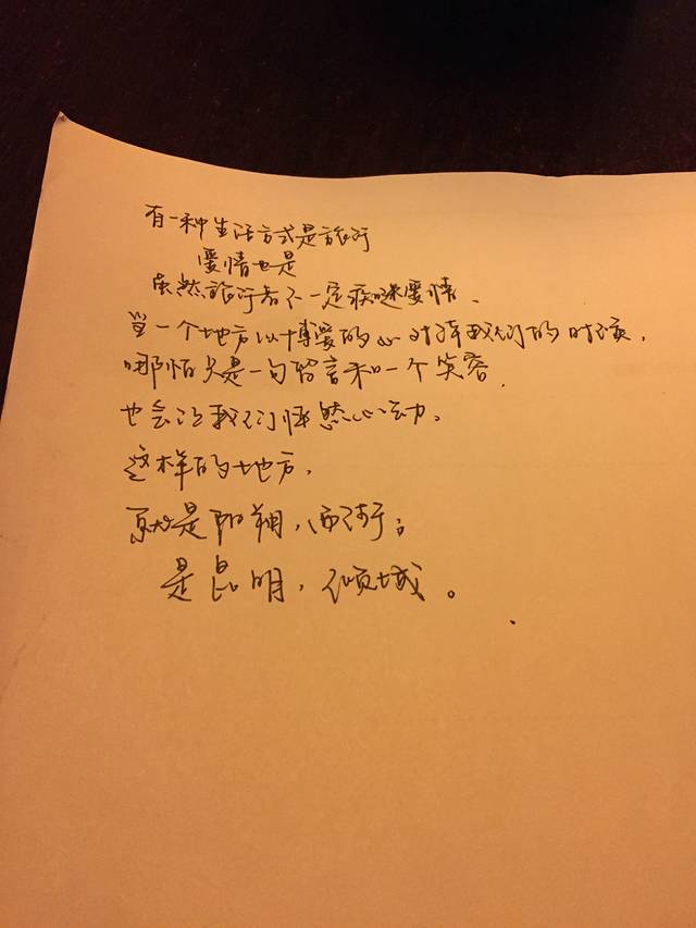 “出来走走,一段时间就好,呆住了走不掉了,是对美好生活的留恋,换言之是对现实社会的逃避。旅行,不是寻求另一种生活, 而是在自己习惯的生活中加点调味剂,就像吃惯了米饭,突然某天对米线面条有兴趣,或是突发奇想在米饭上洒满胡椒粉,不过终究不是平常的味道,偶尔还好,不便长远”