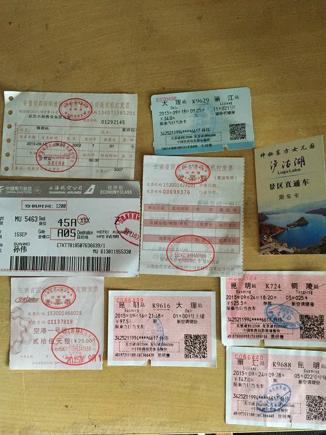 9月24:丽江——昆明,昆明火车站——铜陵火车站