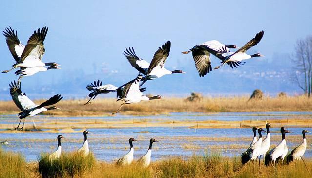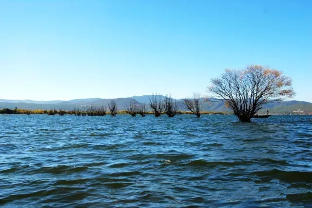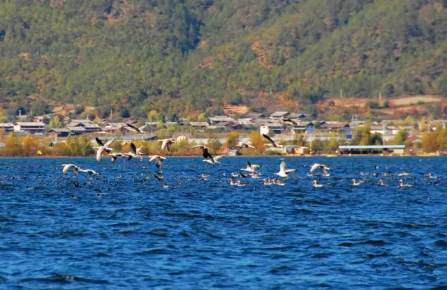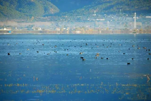 冬日的拉市海,水天一色,湖色优美,是候鸟们的天堂。