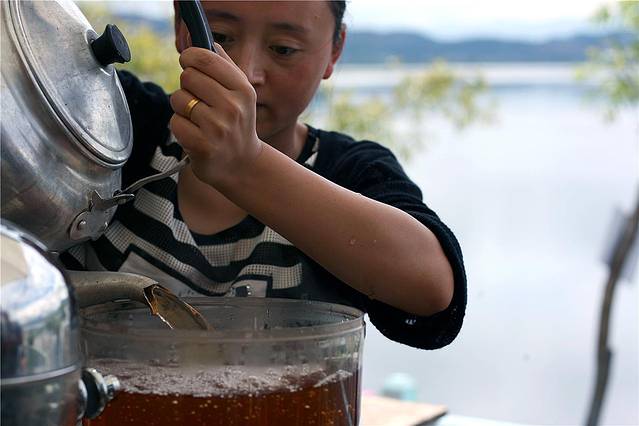 用拉市海的山泉水,煮了壶果茶,甜甜的。