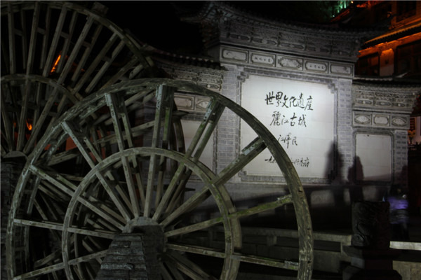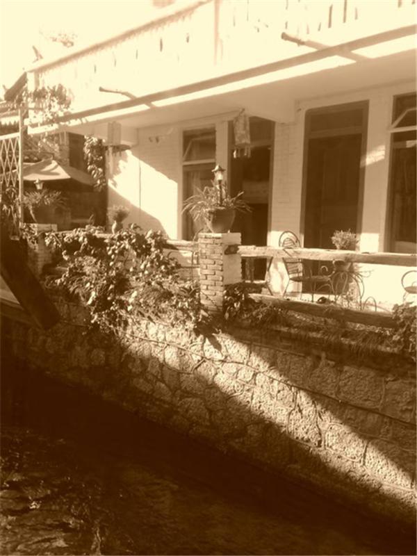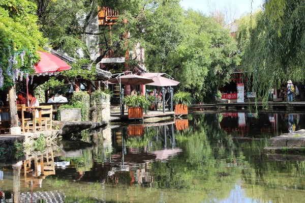 如果提前订好了去束河住的客栈,这天早上睡到自然醒后,就可以踩着青石板,逆流而上走到大水车那里,出古镇到新城,找到“3-8面的”两块钱到束河落脚。