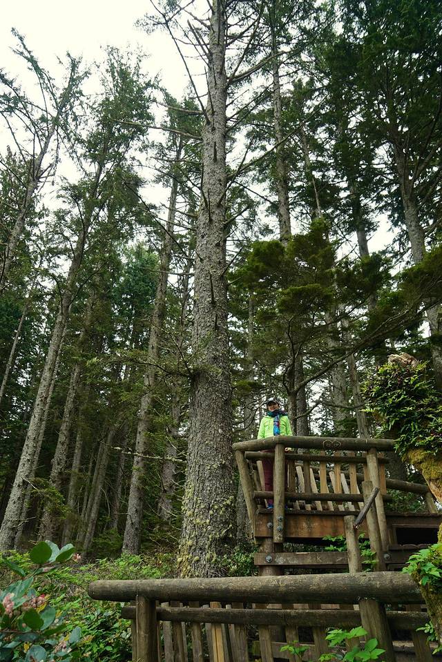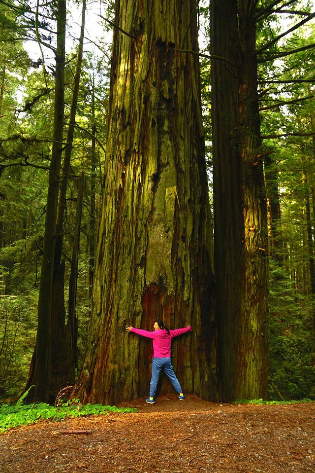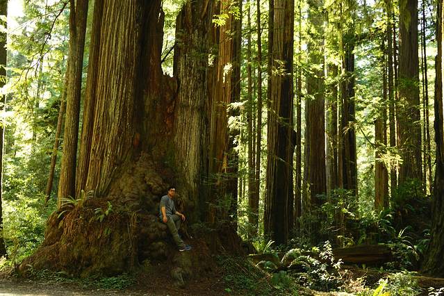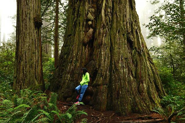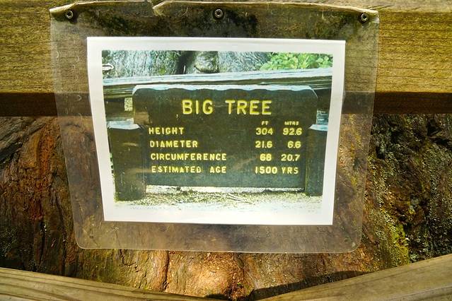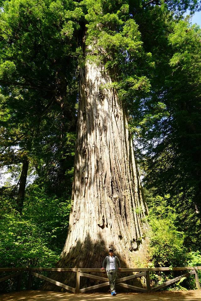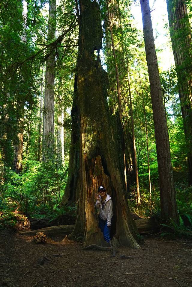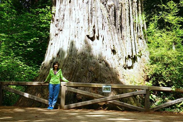 Big Tree 在Prairie Creek Redwoods State Park内,就在路边,遇到了一个黑人大妈旅行团,好在她们的导游需要讲解历史、自然知识,我们迅速游览了这个景点就走人了。这棵红杉大概有1500岁高龄了,红杉的树龄不超过2000年,所以这么大年纪这么健壮还是比较罕见的,当然,为了保护它也就要把它圈起来远离人类的触摸。无论如何,和老神仙拍个照占点仙气吧,只是树太高大,退了很远还是拍不到顶。