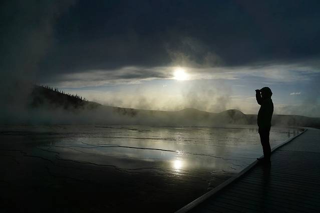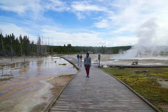 因为太阳已经要落山了,Old Faithful(老忠实泉)还没有去,我们只能放弃登山的计划,先去老忠实泉,明天有时间再爬山去看大棱镜。