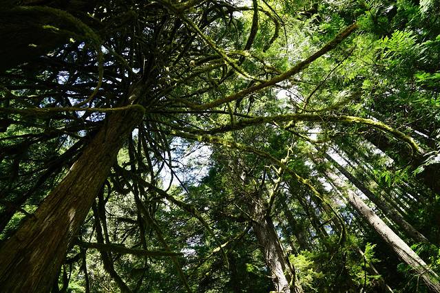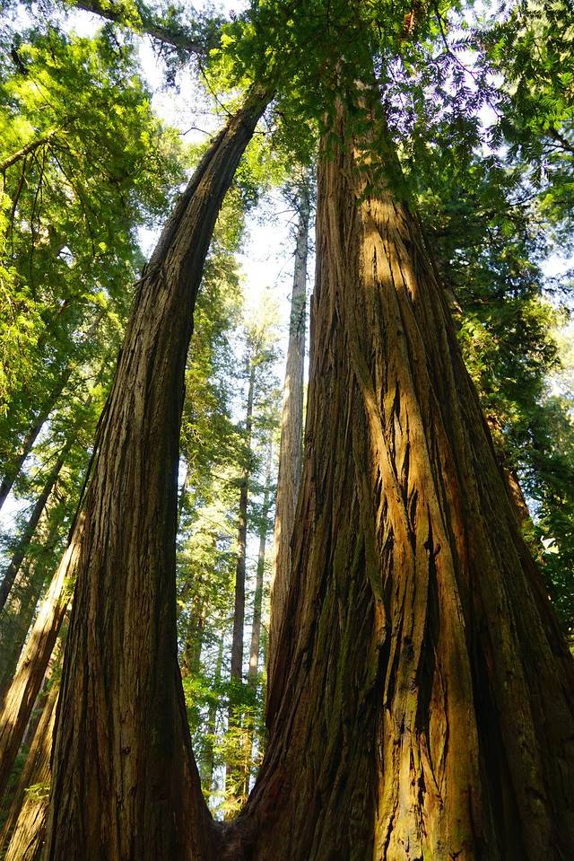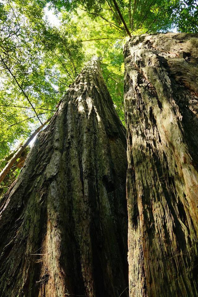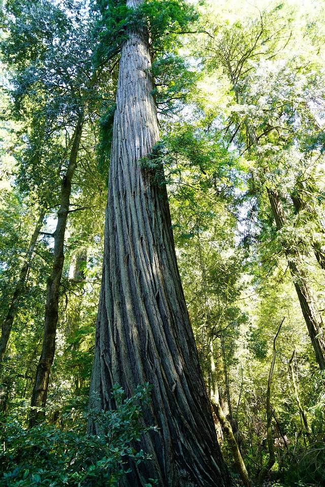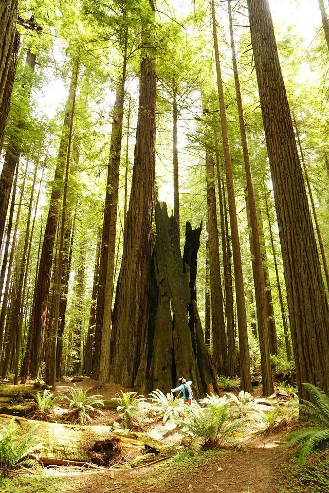 这几天看过最大的树可能就是在这里了,这片树林的平均树龄有400-600年,都是一些古老的大树。Avenue of the Giants两旁不仅有红杉(Redwood),还有巨杉(Sequoia)。巨杉和红杉都是杉树,但巨杉的树干更粗,寿命更长——最长可活3200年。红杉喜爱近海的温湿气候,而巨杉生长在高海拔地区。巨杉的木质比较疏松,表面粗糙,实用价值不如红杉,但它们可以抵御火烧、洪水、昆虫,成为世界上最大、寿命最长的树