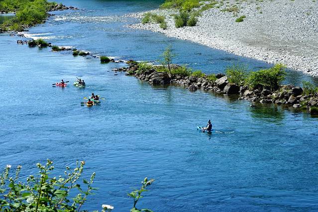 后来在另一个角度看到这条河的时候,看到有人在玩皮划艇。我们沿路找着Stout Grove这个景点,是游客中心工作人员推荐的,地图上也是用大字标出的,一定有好东西看的。