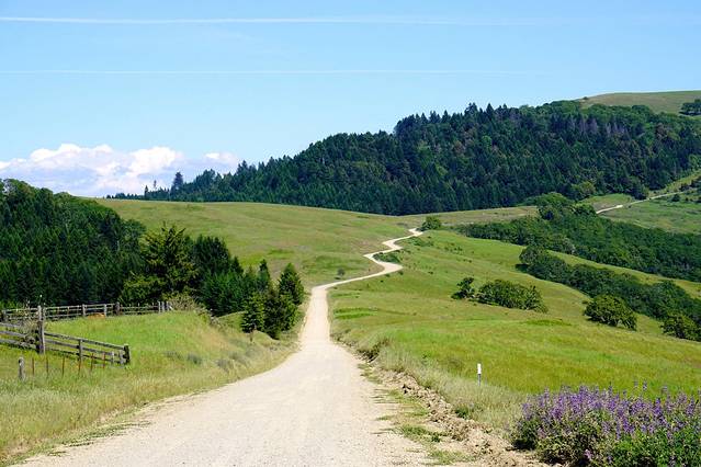 公园内的Bald Hills Road是一条之字形的山路,我们在旅游指南上看到照片,也开车兜了一小段,遇到一个老太太一个人开着一辆皮卡带着一条狗,停车的时候狗狗跑远了,老太太追不上的,扯着嗓子大叫,看到我们经过很不好意思。而她的狗,不知道是认错车还是怎么的,跟着我们的车跑起来了,跑的离她更远了。乐哥拼命跟狗狗说:“不要跟着我啦!我不是你的主人,她在叫你,快回啦!”再次印证,乐哥实在是有狗缘。