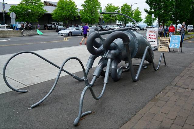 波特兰的城市没有特别吸引我们,不过人是很友善的。我们在路边的停车咪表研究停多久要多少钱的问题,一对情侣经过,男的表情严肃的对我们说了一堆英文。因为之前的注意力没有在他那里,所以没有听懂,疑惑的看着他。他走到我们跟前指指咪表,问我们懂不懂怎么用?我回答说大概知道。他就把整个操作流程告诉了我们一次,然后把停车卡怎样放置在车玻璃上也详细的解释给我们听,很细心很耐心很贴心。他的女友一直在旁边等着他,而他始终都是很严肃的,以至于一开始我们以为他要责怪我们乱搞机器。当我们完全明白了怎样使用,谢过他,他才欣慰的露出了笑脸,和我们说再见,欢迎我们来到波特兰。