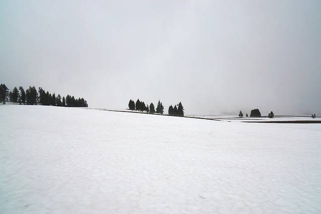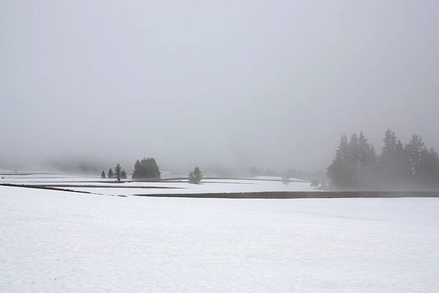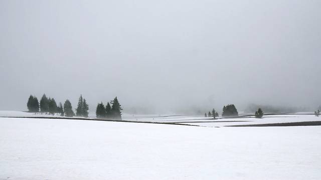 也许是海拔比较高(2000多米),也许是地理位置的关系,火山湖公园整个景区被厚厚的积雪覆盖着,路旁的积雪比人还高。所以,今天虽然是来了火山湖公园,实际上我们确实在看雪景,这样的雪景的确震撼,道路和树在茫茫白色中勾画出简单的线条图案,那么不经意却又那么美。