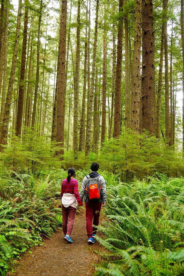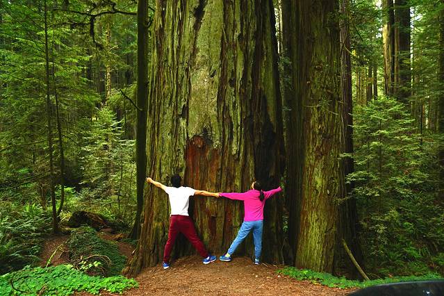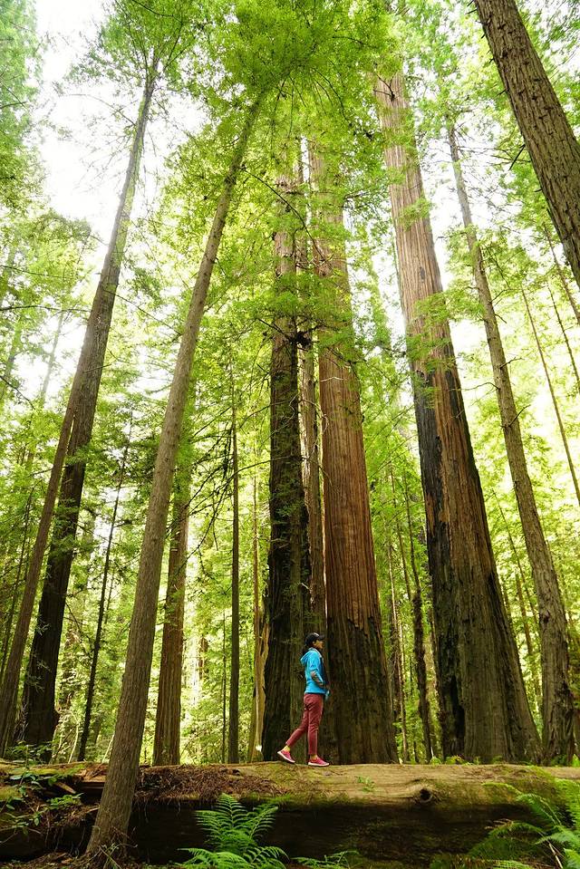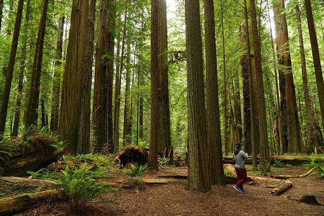 Lady Bird Johnson Grove(约翰逊夫人林)的命名是为了纪念把一生献给红杉保护工作的Lady Bird Johnson,在她的努力下,1968年这里成为了Redwood National Park(红木国家公园)。公园有多条徒步路线,我们去了比较经典而且难度系数最低的Lady Bird Johnson Grove Trail,全长2.4公里。