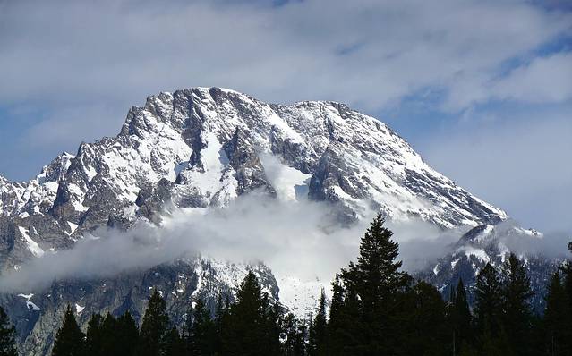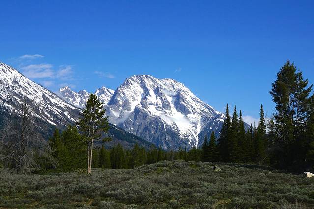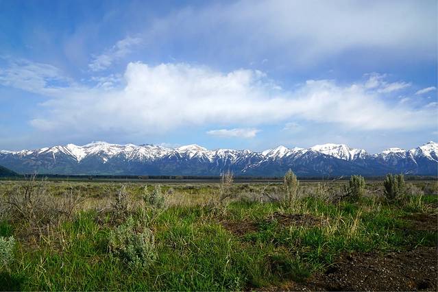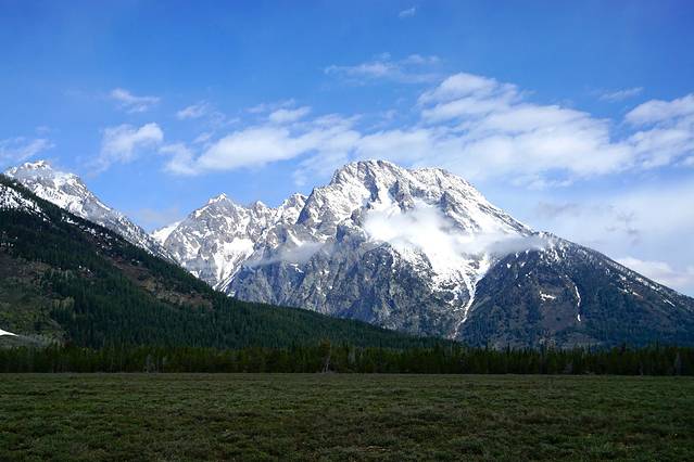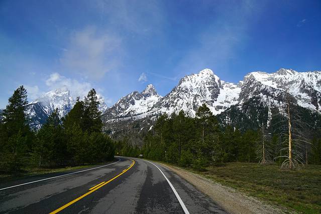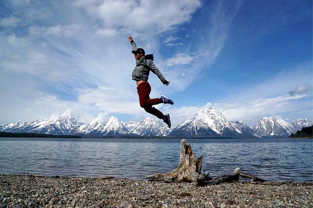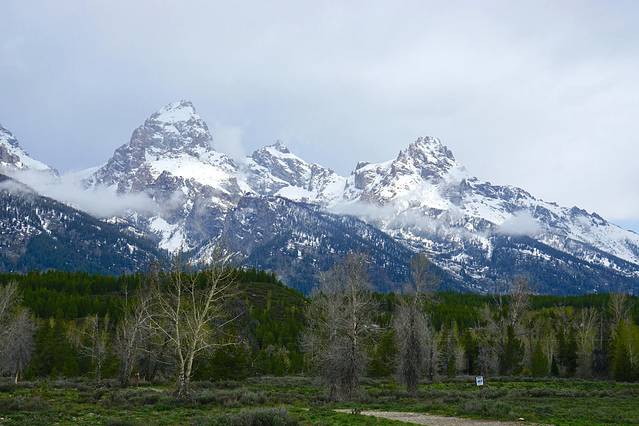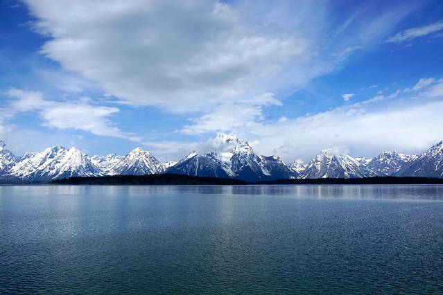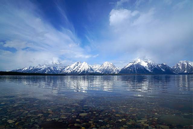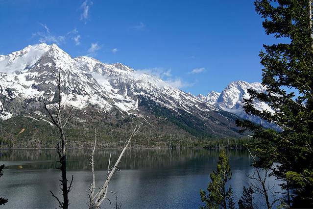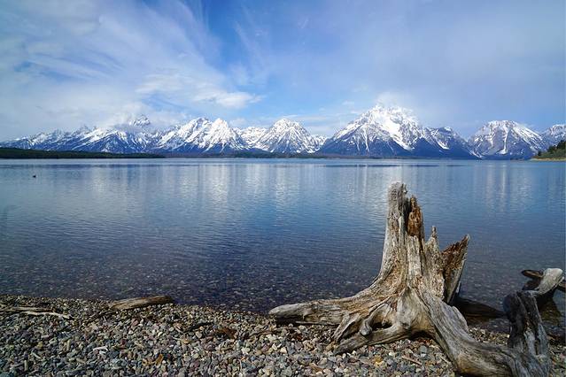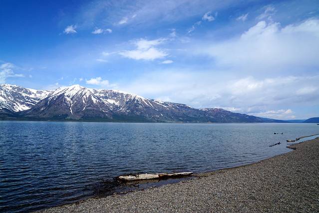 今天我们要穿越大提顿去到黄石,我们选择了西线,因为西线的景大部分在西面,上午正好都是顺光。昨天去过的Janny Lake因为没有拍到理想的照片,今天打算再去一次,因为这里是在湖边拍雪山最近的地方,湖面雪山的倒影非常漂亮。不过,我们并没有能够拍到理想的倒影,风有点大,水面不够平静,而且,可能我们没有环湖徒步,就近找到的角度都不是很理想。算了,不必执着,毕竟美景已经印在心中了。