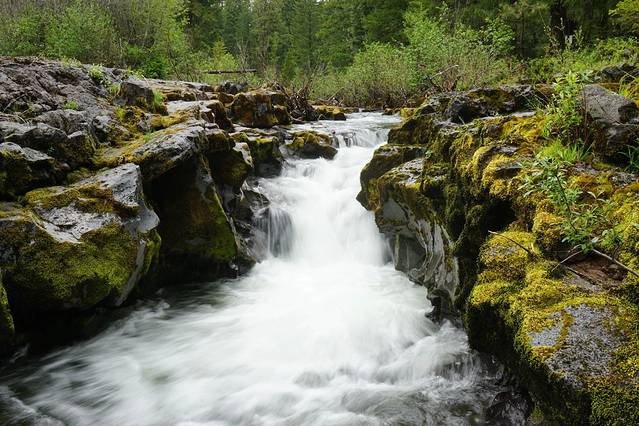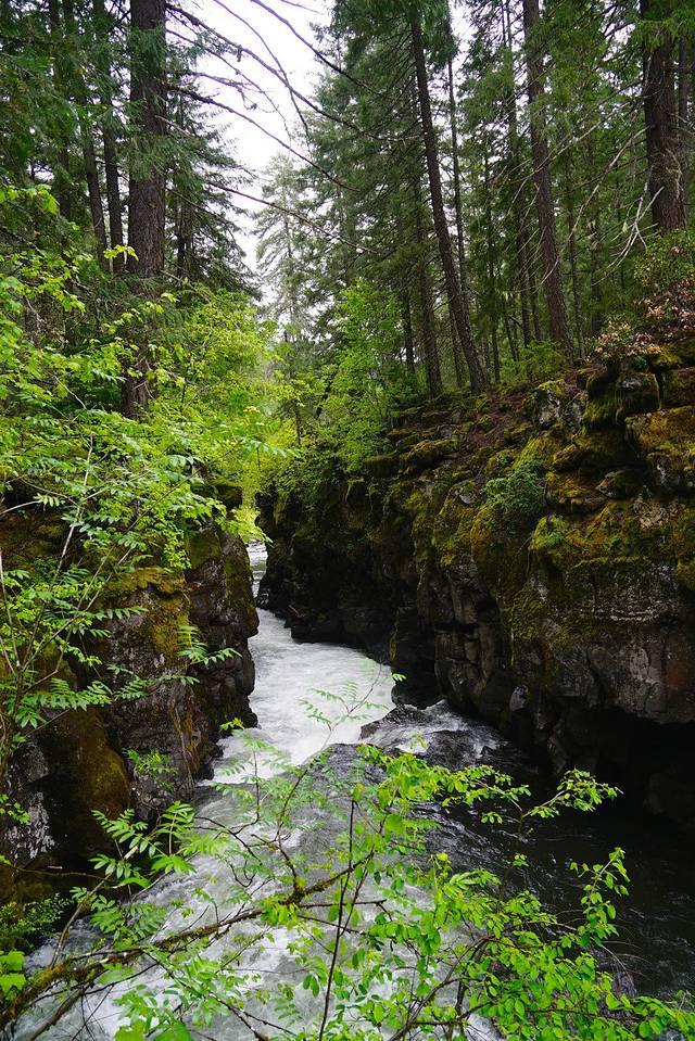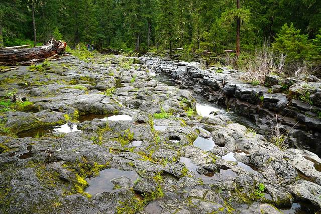 景区外的景色其实也是非常美的,进来和出去虽然走了两条不同的路,但景色都是非常美的,忽略火山公园,走上一段这样的路也很不错的。只是进来的路没有观景台,道路比较窄不能停车,所以只能我自己独享美景,无法分享了。回去的这段路好几个观景点、徒步点,还有州立公园,天好的时候徒徒步应该是蛮不错的。出了景区雨就停了,但风还是很大,温度很低,我们没有带冬天的衣服,穿了最厚的衣服还是无法在户外待太长时间,所以就只是游览了一条河的几个观景点,走了2公里左右的步道。这条河有着奇特的火山与瀑布景色,我感觉河流是在凝固了的火山熔岩之间流淌,也许是河流使得火山熔岩流过此地时凝固的。