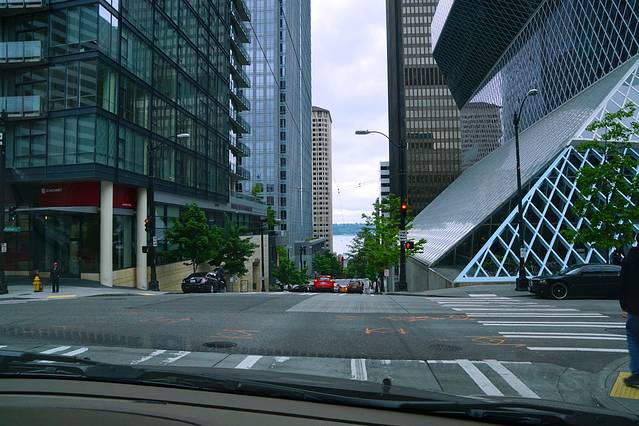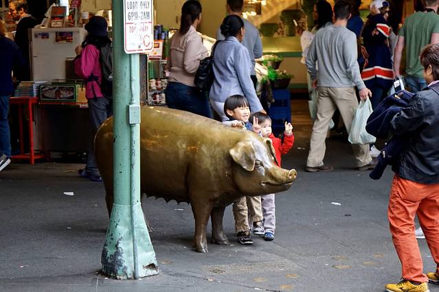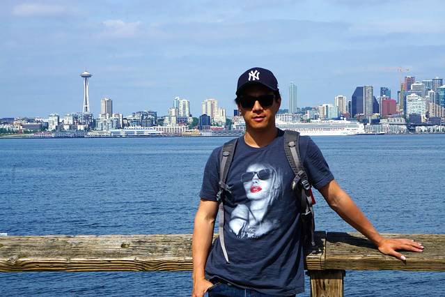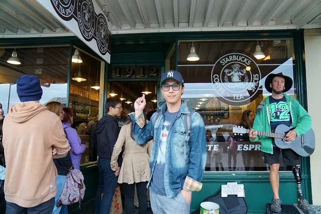 晚饭时间前我们来到了派克市场,传说中的价廉物美的美食始终没找到,倒是幸运的遇到了著名的“抛鱼表演”,卖鱼的商贩穿着鲜艳的橙色裤子,喊着好听的号子,将大条的鱼抛来抛去,我们看得目瞪口呆,连拍照都忘记了。全球第一家星巴克,小小的店面已不能容纳全世界热爱咖啡人士的热情,络绎不绝的顾客把门口的街道都站得满满的。重口味的Gum Wall (口香糖墙)走了几圈也没看到,还好没看到,听说真的很重口味,而且味道很不好闻,我不确定我会不会吐。 西雅图曾经在我的印象中只是一部电影《北京遇上西雅图》,决定来西雅图才开始上网了解这个城市,想不到它竟然有那么多的“之最”。来到了西雅图,感觉到它并不像描述的那般时尚与前卫,“艺术之都”的称号也有点言过其实,恐怖的堵车我们也没有遇到,和普通的美国大城市一样,它依旧平易近人、依旧如邻家小妹般平凡而可爱。