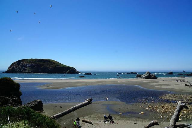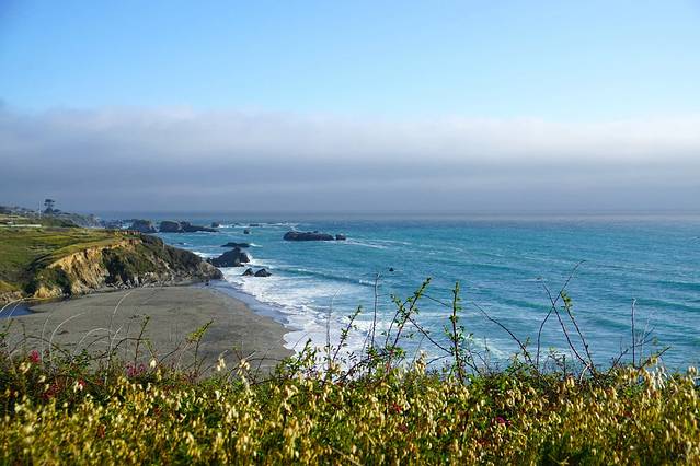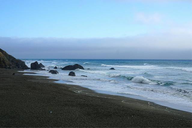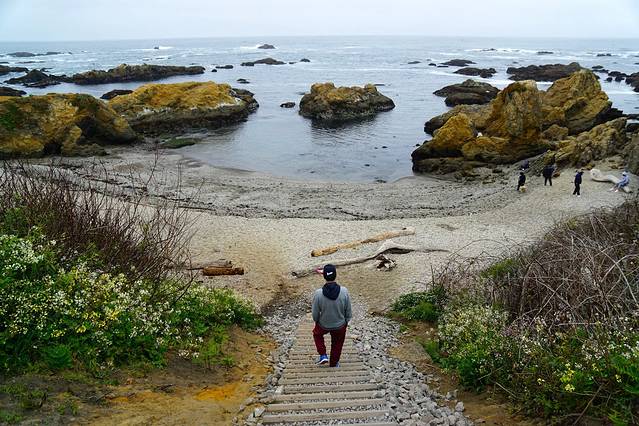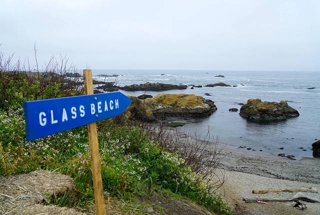 刚到美国就在微信朋友圈看到朋友分享的“世界最美沙滩”,其中有美国的玻璃沙滩,但也没太留意在什么地方,觉得自己不会专门去看这个沙滩,如果是沿途经过当然也不大可能会错过。还是乐哥的巨大贡献,晚上在酒店研究他收集回来的旅游资料,赫然发现Glass Beach(玻璃沙滩)就在我们当晚住的Fort Bragg(布拉格堡),距离酒店只有5分钟车程。这么近,今天当然不能错过啦!