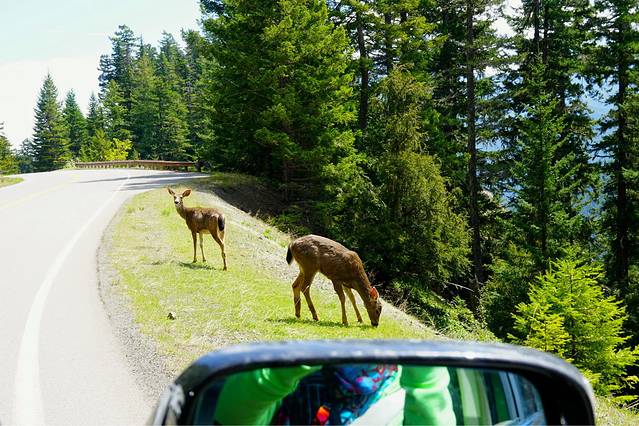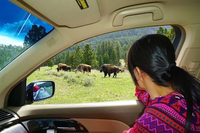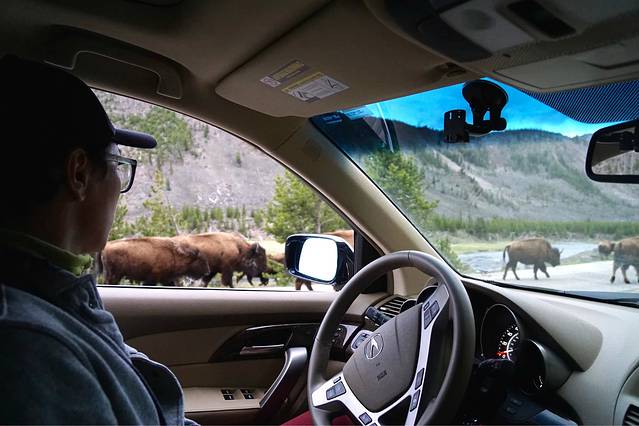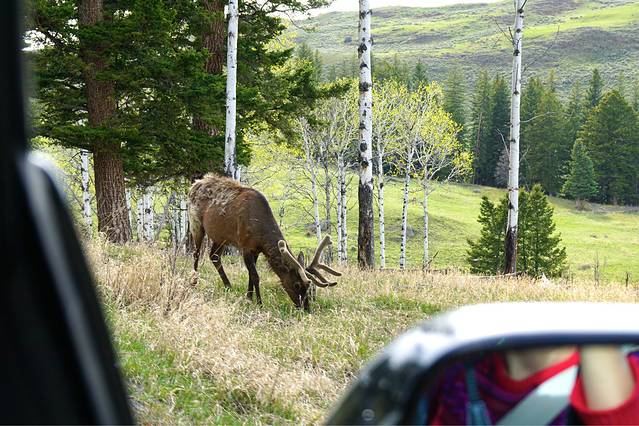 至于大峡谷,有一个观景点,有一段步道环线,可以沿着步道俯瞰峡谷,对面峡谷的岩壁还蛮特别的。黄石的野生动物的确多,经常能看到野牛和麋鹿,经常出现的大草甸如果再过一个月应该会更加水草丰美,难怪美国人都是6月之后才来黄石,我们这避高峰的玩法损失了不少美景啊,有机会一定要在最好的季节再来一次。