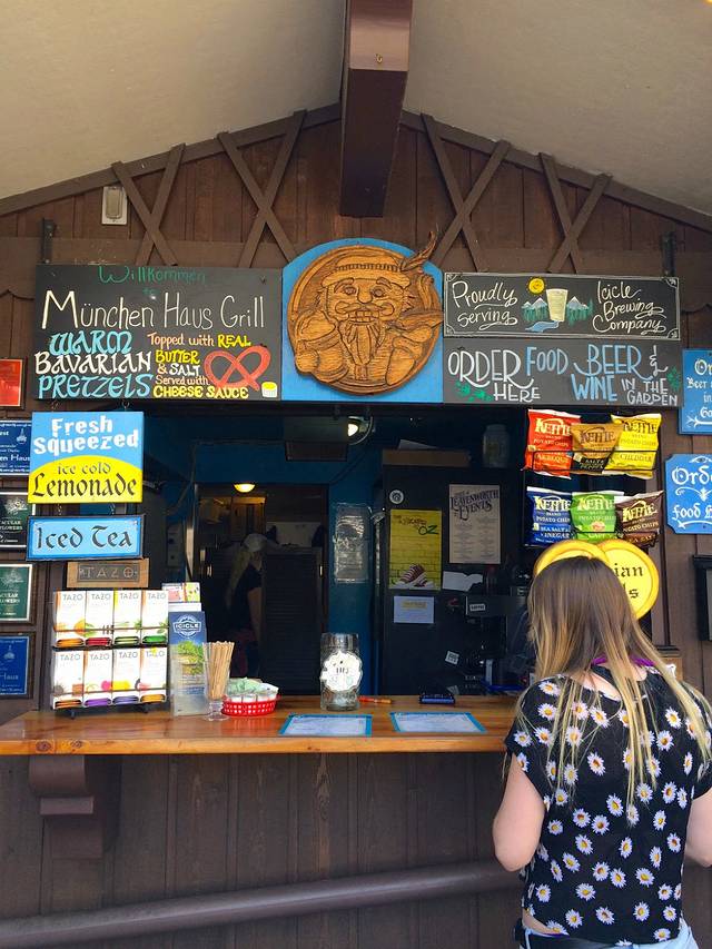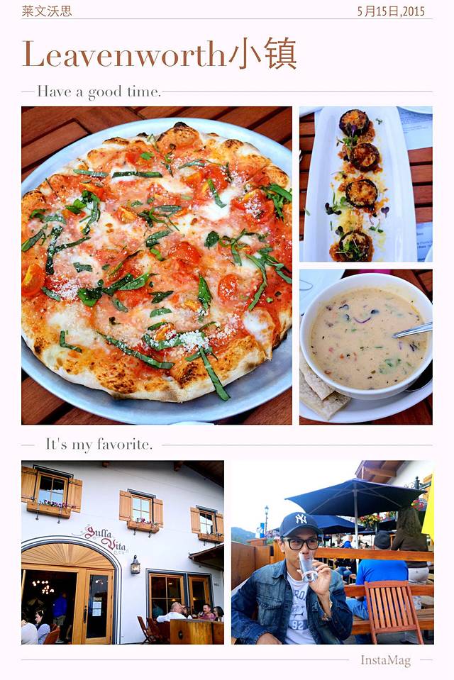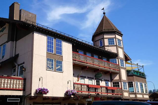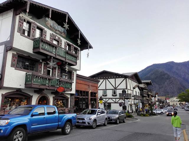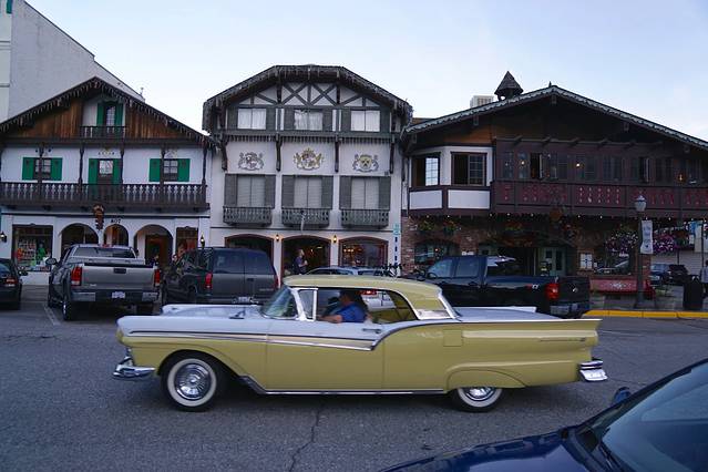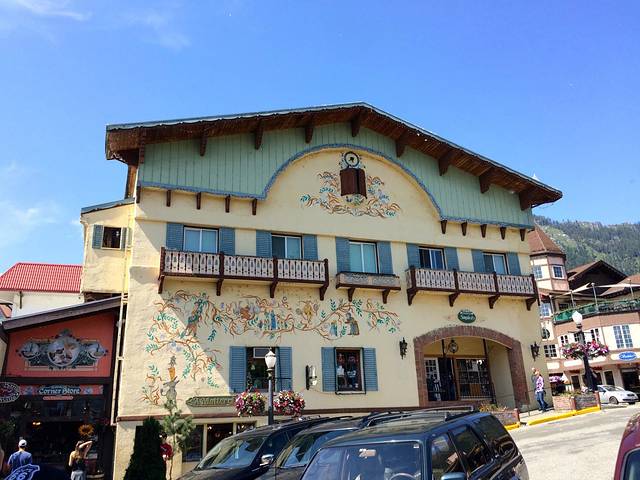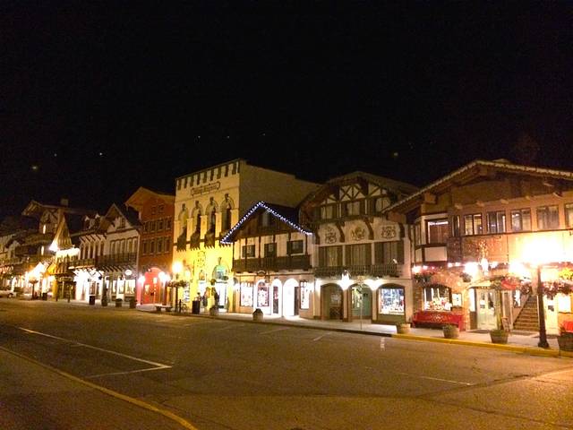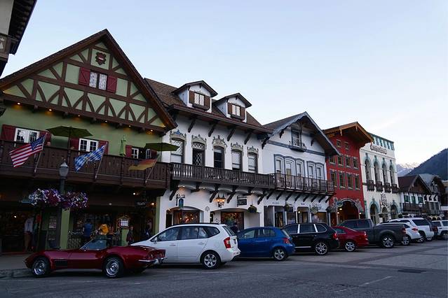 湖边的景色还是不错的,不过游人也不少,并没有我们想要的那种感觉,而且酒店挺贵的,于是放弃了流下来的想法,继续往西雅图方向去。路上,乐哥并没有输入Seattle(西雅图)的位置,而是输入了Leavenwoth (莱文沃思 ),起初我以为Leavenwoth 是Seattle旁边的一个小镇,他不想进城去住所以选了这里。后来看看地图,差很远啊,还有200公里才到西雅图啊,而且并不完全顺路,是兜了一段路专门去这里的呀!我问他究竟是什么地方,他还神秘兮兮的不说,只是说网上看到说一定不能错过的一个地方。