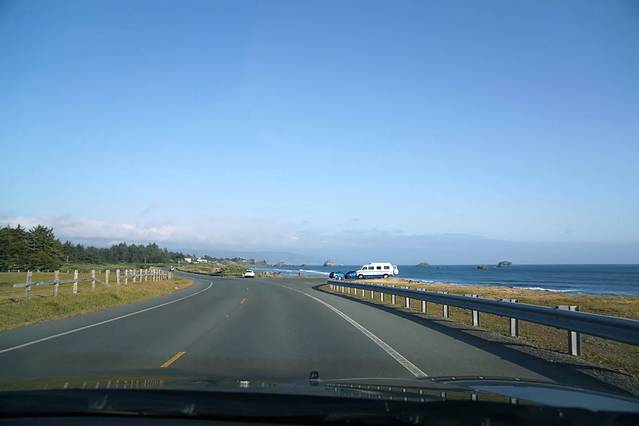 说起来俄勒冈州还蛮神奇的一个地方,这里加油居然不是自助的,又说它是引领美国未来城市的先锋,美国所有地方都自助加油了,它反倒开始人工了?未来的趋势是这样吗?这个州是不收消费税的州,我们是回来之后才知道的,不然就再那里好好买买东西啦!美国其他地方的消费税差不多有10%,不收税实惠很多的呀,而且物价本身应该也比加州要便宜。因为,我们后来在海边沿着101公路行驶,同一个地方,一过俄勒冈的边界到达加州,油价立刻升了近1美元。我们没去波特兰血拼,反而赶去了Sutherlin(萨瑟林)真是一大失误啊。