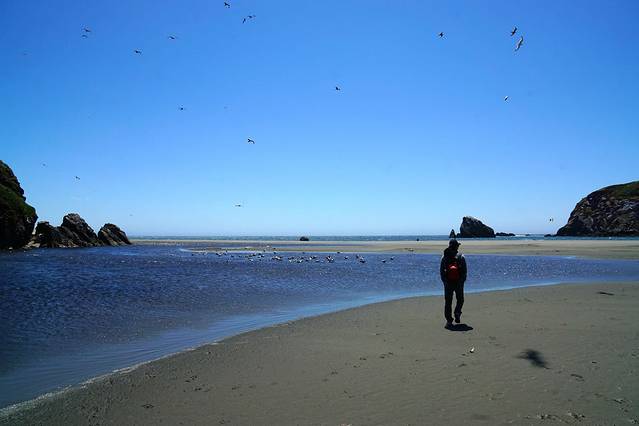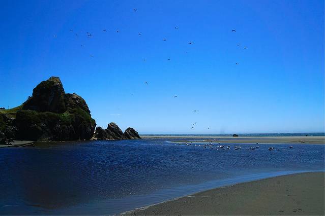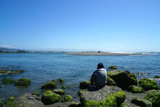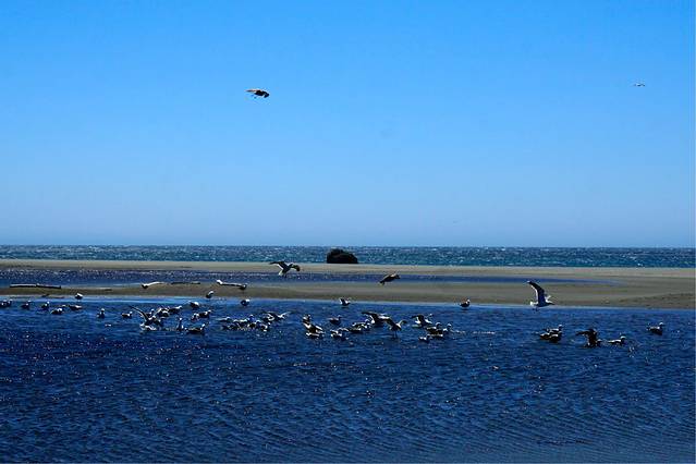 离开小岛我们沿着海边的路开了一段,在一处海滩停下来吃了个午餐。今天我们睡了出行以来第一个大懒觉,11点才退房离开酒店开始今天的行程,所以此时已经到了午餐的时间。这一片海域挺特别的,沙滩把海隔开成一个湖,有很多的水鸟在和海豹,海豹都在水里很勤奋的游泳,要用望远镜才能看到。除了风大,其他一切都几近完美,宁静的海边游人不多,晒晒太阳看看水鸟,吃点零食,小日子挺美的,真是悠闲的一天啊。