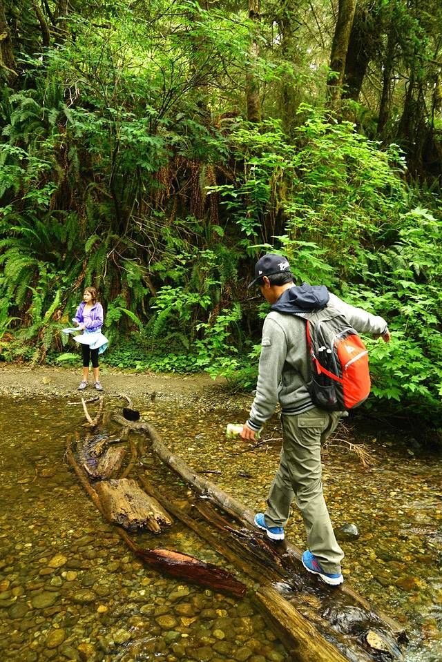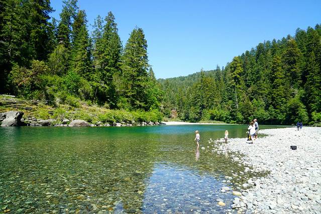 沿着101转到199公路,Jedediah Smith Redwood State Park的入口就在路边,有一条河从公园穿过,我们昨天在河的对岸没进去公园,今天沿着公园的路一直开到了河边。
