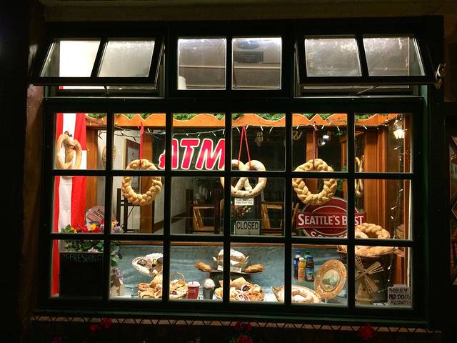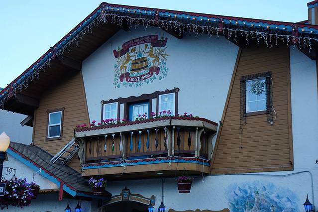昨天到达莱文沃思的时候已经傍晚了,虽然拍了夜景还是觉得没有好好逛过小镇,所以今天早上退了房我们并没有马上离去,又一次走进了那个童话世界。今天是周末,童话小镇有很多活动,主街上有艺术品集市,公园里有关于鸟类的展览和讲座,草地上大人孩子认真的听着关于鹰的话题。在这里我竟然又看到了室内旱冰场,那是我儿时的记忆啊!草地上陪伴孩子玩耍的父亲再次感动了我,老夫妇穿着随意的打着高尔夫球场面温馨。巴伐利亚风格的星巴克咖啡厅、镶着花边的76加油站指示牌,无处不盛放的鲜花,还有空气中甜美的烤面包圈的味道,四处都洋溢着欢乐的气氛,让人不舍离去。但是,再喜爱的地方也终究是要说再见的,就如我们的人生,无论经历怎样的繁华,最终还是要归于平静,一切想要拥有的念头最终也敌不过必须放手。哈哈!莫名的感叹啊,难道是西雅图正在靠近,这个“艺术之都”总是会激发各种灵感。