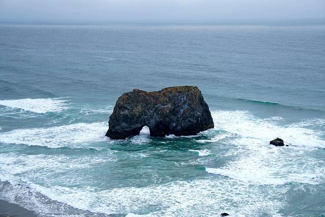 这两天太平洋的雾气特别大,海边总是灰蒙蒙的,沿着海岸开了100多公里来到Cannon Beach(卡侬海滩),简直有点腾云驾雾的感觉,雾气大的几乎连远处的岩石都看不到了。虽然这种景致比较特别,但太平洋少了蓝天的映衬没有了碧蓝的海水,吸引力减弱了很多,而且没有阳光的时候海边就像冬天一样寒冷,简直是寒风刺骨啊,我们只能草草收兵。还是去内陆吧,离开海边只需要几十公里,阳光就会普照大地。
