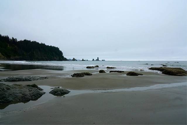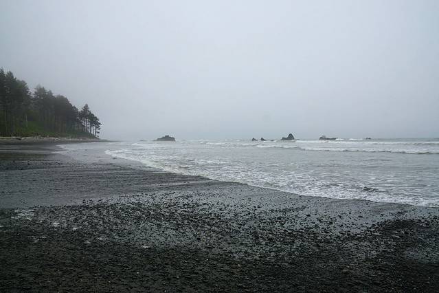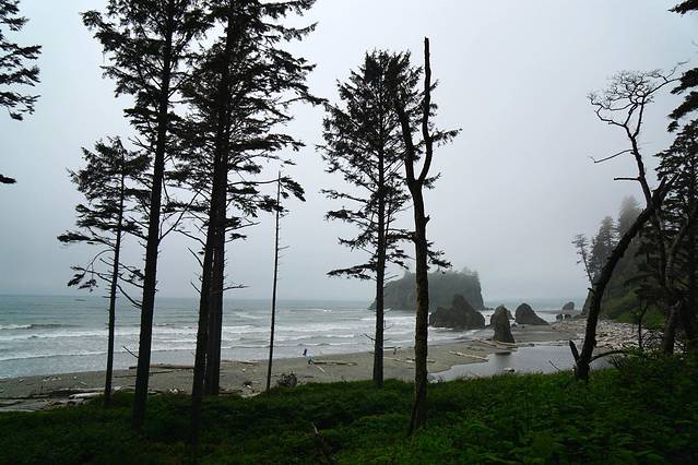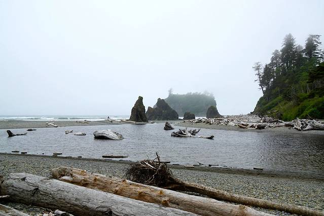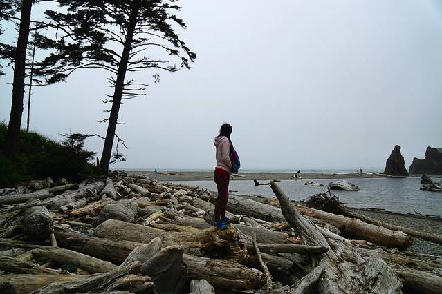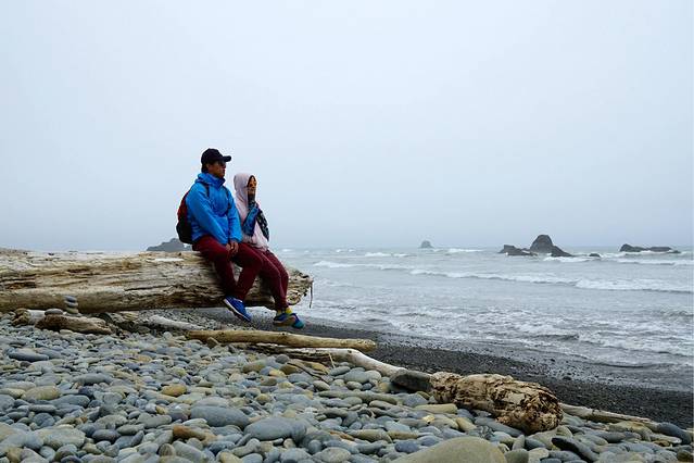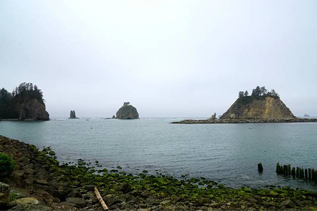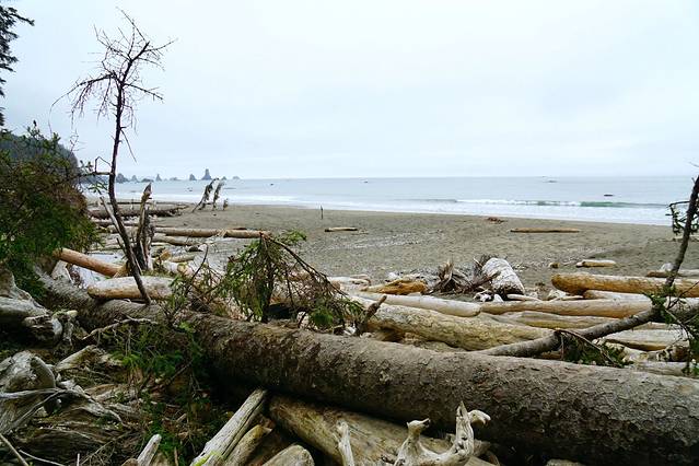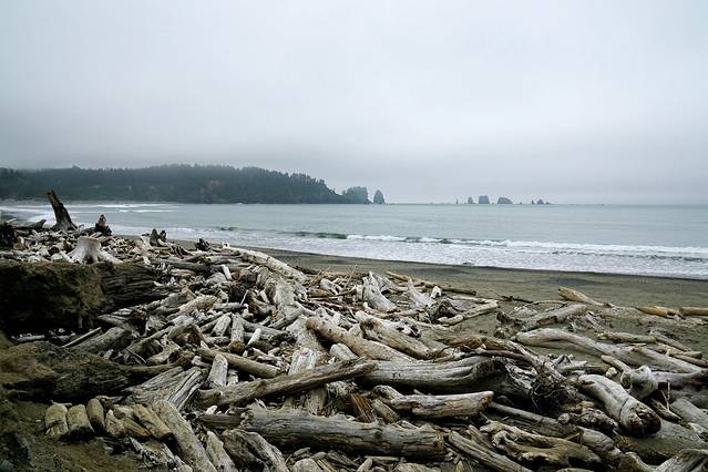 午饭时分我们来到了La Push海滩,这里应该是印第安保留区,周围的房屋明显比其他海滩看到的房子破旧一些。我们停在一个可以看到海的停车位,在车上边吃午餐边看海景。La Push海滩和Third Beach毕竟像,不过枯树要更多一些,更凌乱一些,当然,这就让它看起来更萧瑟一些。