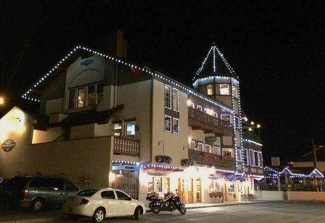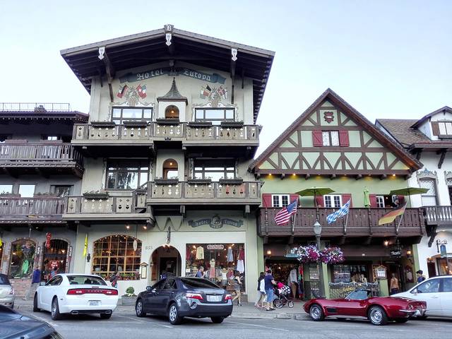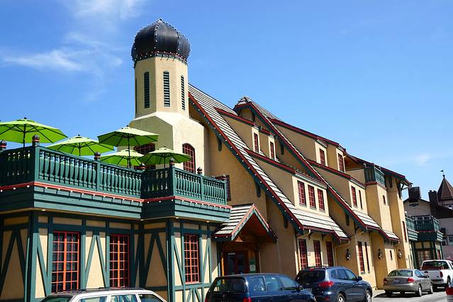 乐哥告诉我,这里原本是一个矿区,后来停止采矿了,当地有大量的德国移民,他们就把小镇建成了德国巴伐利亚风格,吸引游客前来观光旅游。天色已晚,我们找了一家酒吧隔壁的餐厅,要了一个露天的位置,这样可以听着酒吧的音乐,吃着餐厅的美食。这里的酒庄与加州的Napa(纳帕)同样出名,于是,我们点了杯红酒,在这个梦幻的小镇,尽是欢乐的面孔,我们怎能不兴奋、怎能不Happy一下。